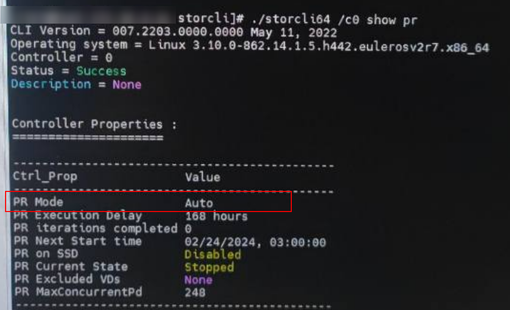 storcli64 /c{ctl_id} show pr #检查PR
