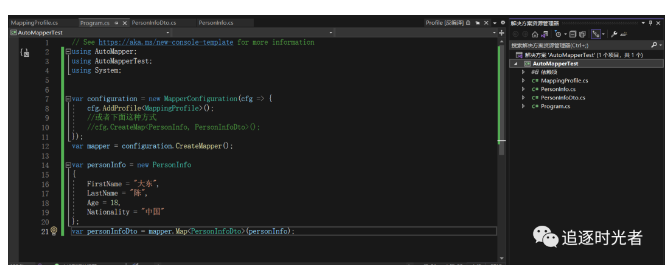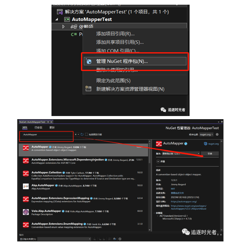 管理NuGet程序包 搜索:AutoMapper 安装: