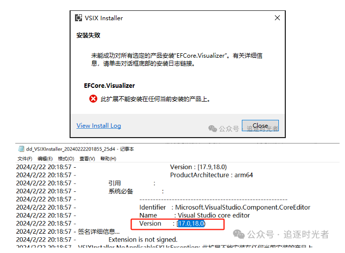 Visual Studio版本太低会安装失败: