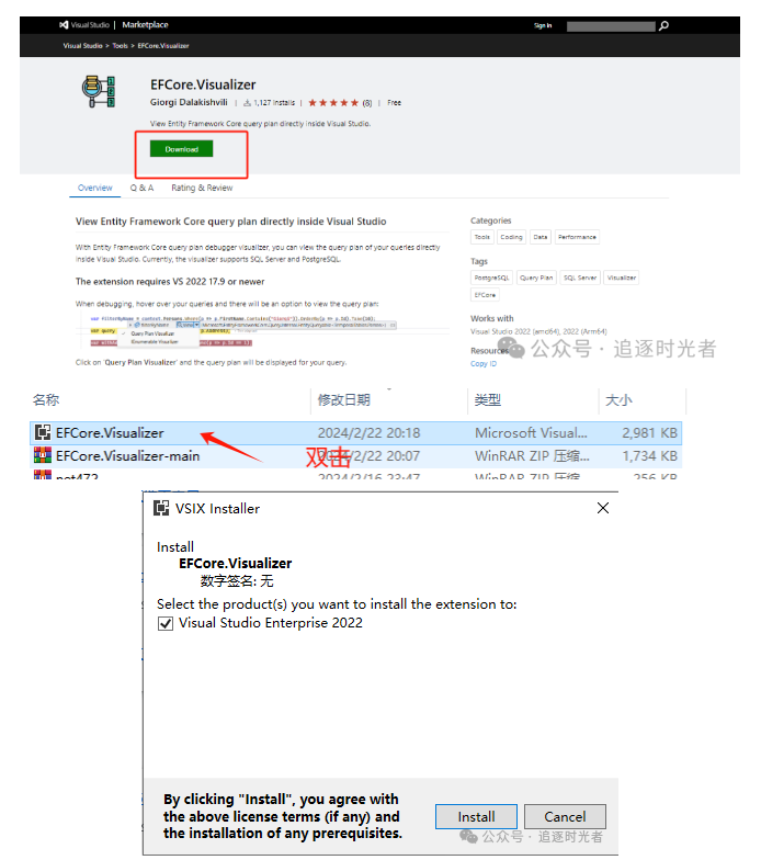 EFCore.Visualizer工具需要Visual Studio 17.9.0版或更新版本,支持EF Core 7或更新版本。