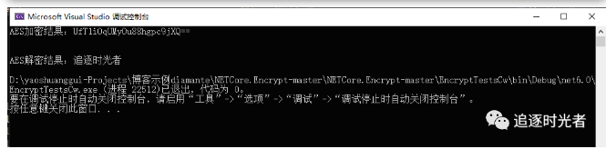 Console.WriteLine("AES解密结果:" + decrypted);