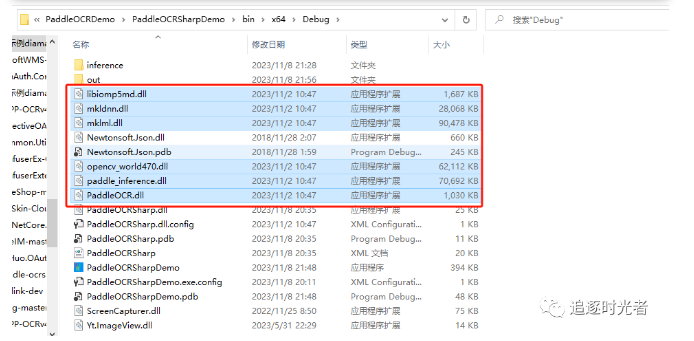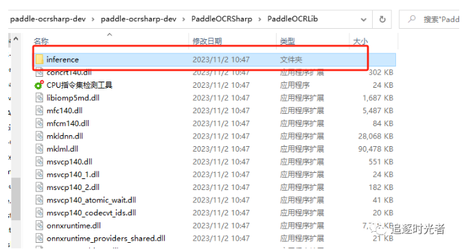 或者复制源码对应位置paddle-ocrsharp-dev\paddle-ocrsharp-dev\PaddleOCRSharp\PaddleOCRLib\inference下面的模型到项目输出目录中: