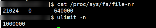 告警句柄使用超阈值,可通过以下命令进行检查当前句柄数与句柄数上限