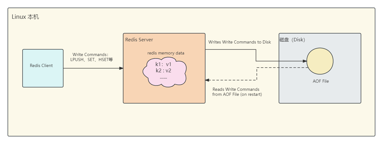 当 Redis 服务器启动时,如果配置为使用 AOF 持久化,它会检查 AOF 文件的存在。如果找到 AOF 文件,Redis 会加载并执行其中的命令来恢复数据的。