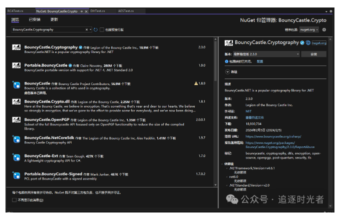 搜索名为:BouncyCastle.Cryptography包安装: