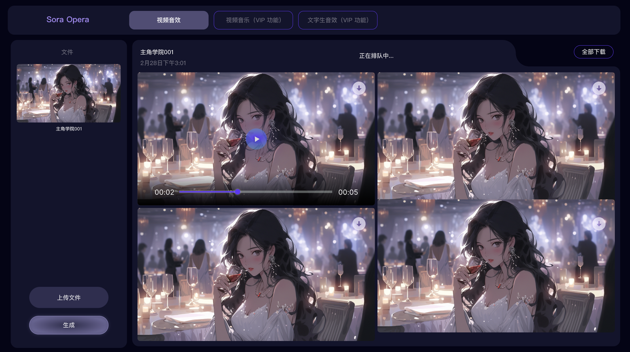 Sora Opera除了可以直接为AI视频提供稳定的画面音效之外,还可以直接通过文字生成音效,利用Sora Opera还可以为视频配乐,创造一种史诗级大片感觉。