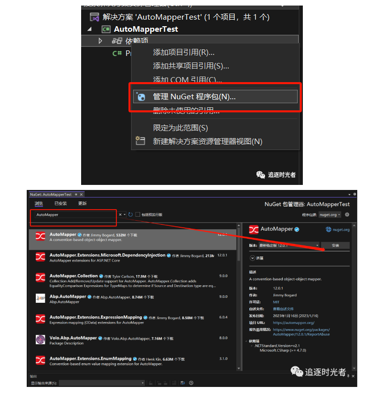 管理NuGet程序包 搜索:AutoMapper 安装:
