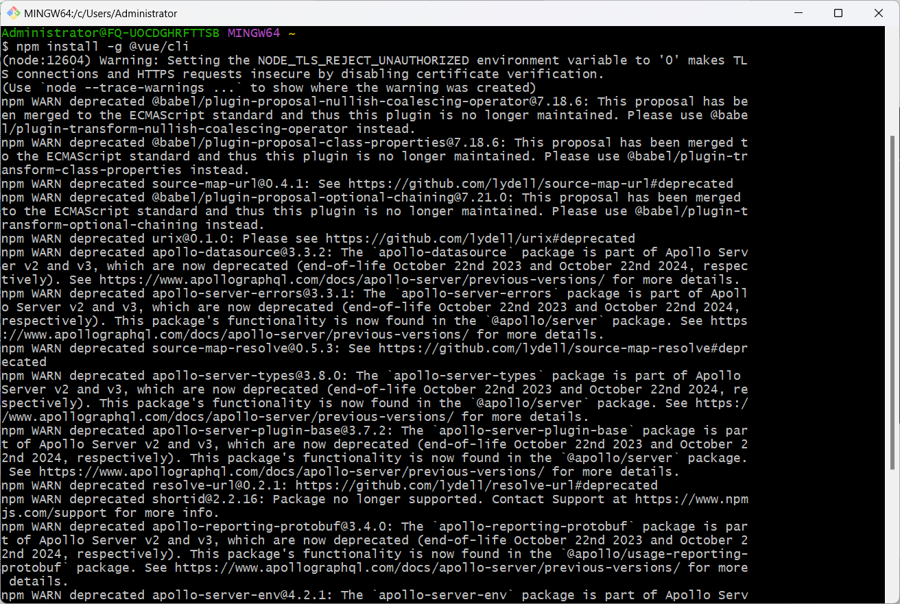 5. 在命令提示窗口执行如下命令,全局安装 vue-cli。