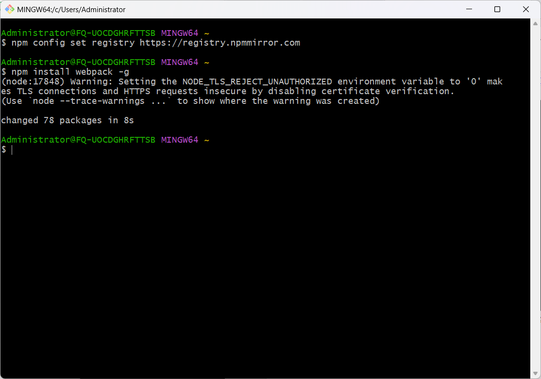 4. 执行如下命令,在系统上全局安装webpack。注意:在此之前您需要确保您已经安装了Node.js和npm。
