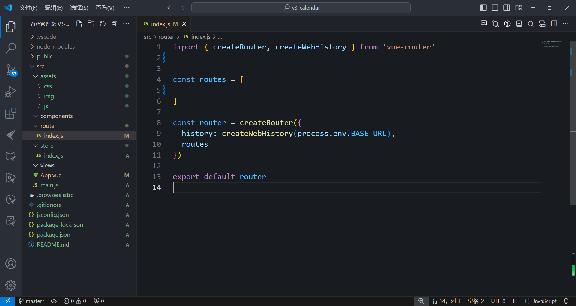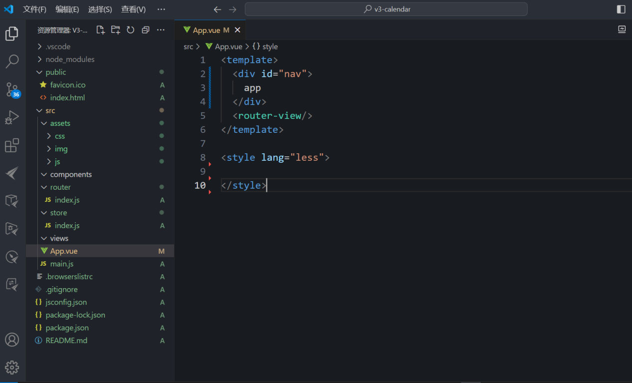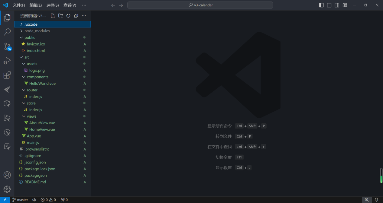 1. 在“C:\Users\Administrator”下找到v3-calendar文件夹,使用Visual Studio Code打开(简单方法:直接将v3-calendar文件夹拖拽至Visual Studio Code中),打开后如图所示。