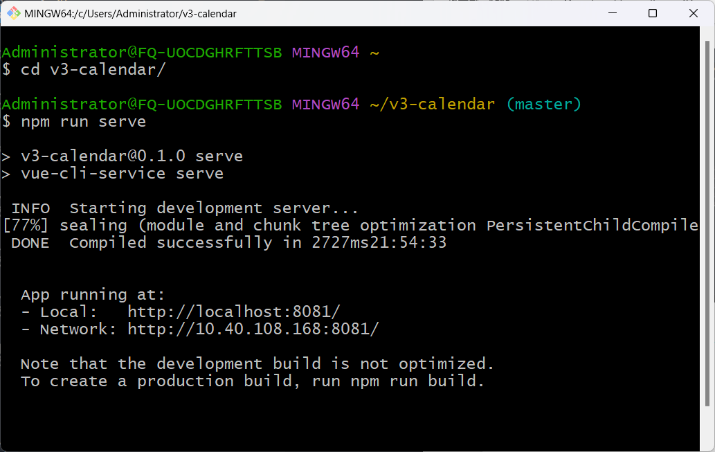 本篇文章介绍通过了Git Bash创建v3-calendar项目,之后对v3-calendar进行简单修改。