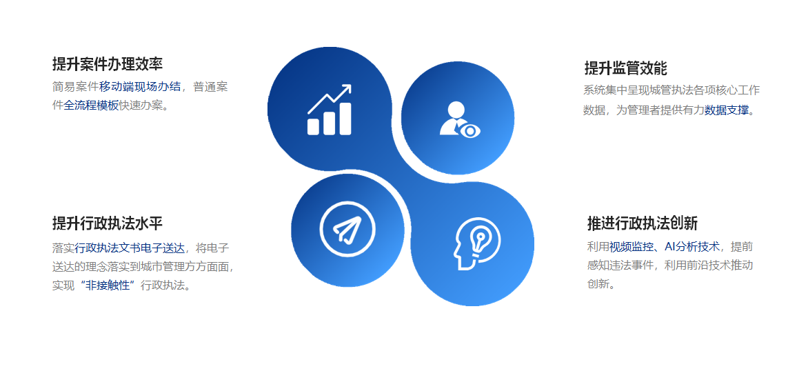 系统集中呈现城管执法各项核心工作数据,为管理者提供有力数据支撑。