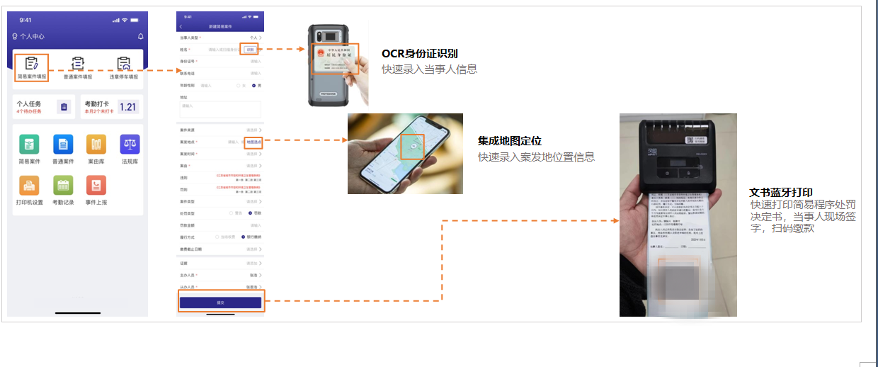 简易案件移动端现场办结,普通案件全流程模板快速办案。