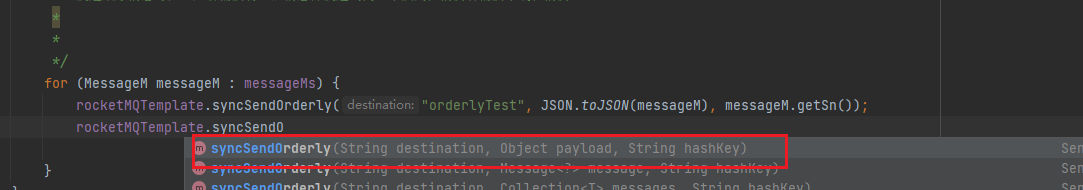 rocketMQTemplate.syncSendOrderly("orderlyTest", JSON.toJSON(messageM), messageM.getSn());
