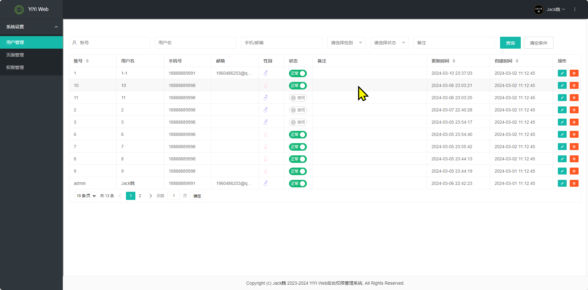 YiYi-Web权限管理系统(不分离版),SpringBoot + Thymeleaf 后台管理系统框架。