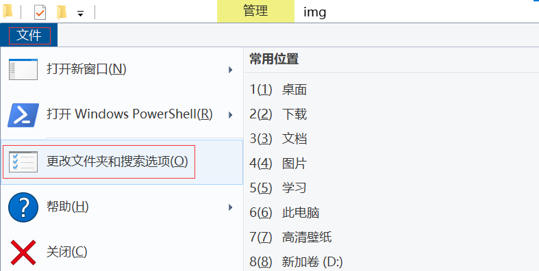点击计算机 ->单击文件 -> 更改文件夹和搜索选项