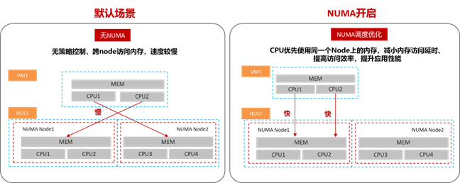 NUMA(Non-Uniform Memory Access,非一致内存访问)是提升多核CPU性能的特性。每个核心有单独总线、内存控制器和IO等,将内存和CPU进行绑定划分,把固定大小的内存分配给指定CPU序列,形成一个Node,整个CPU、内存资源由多个Node组成。CPU访问本端Node内存的速度要远快于访问远端Node内存。