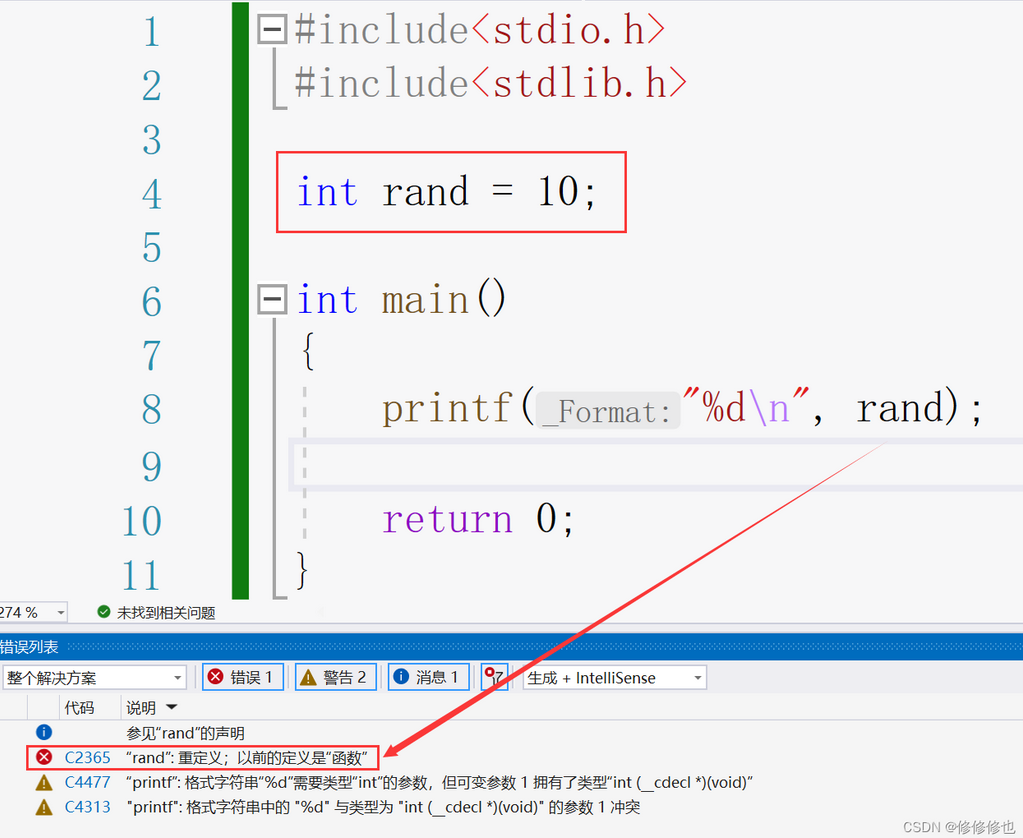 namespace MFC { //命名空间中可以定义变量/函数/类型 int min = 1; int Sum(int a, int b) { return a + b; } struct Stu { struct Stu* next; char name[10]; }; } using namespace MFC; int main() { printf("%d\n", min); printf("%d\n", Sum(1, 2)); return 0; }