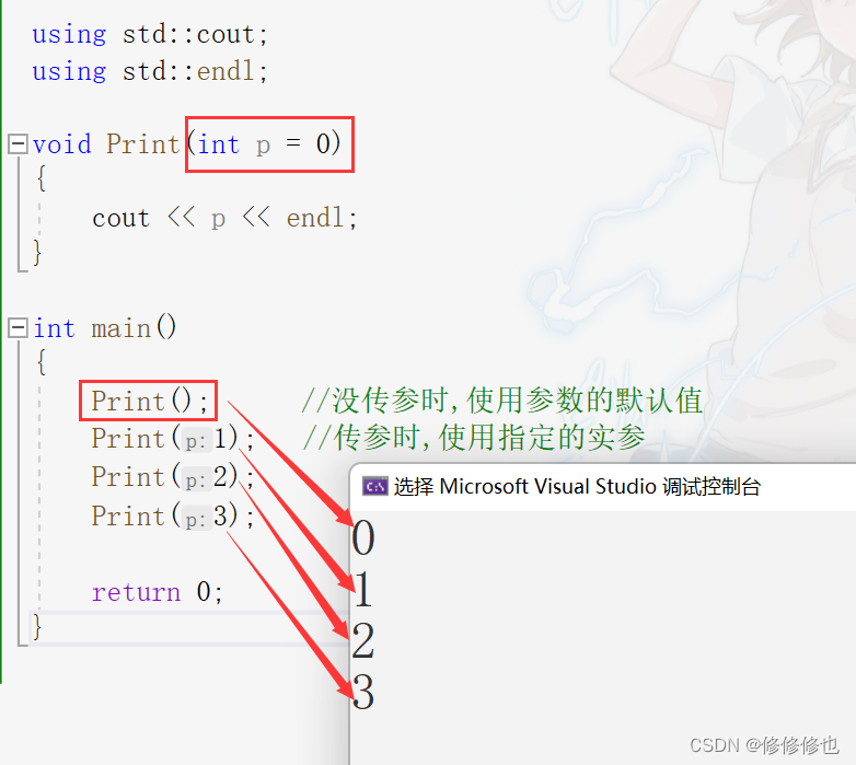 Print(); //没传参时,使用参数的默认值