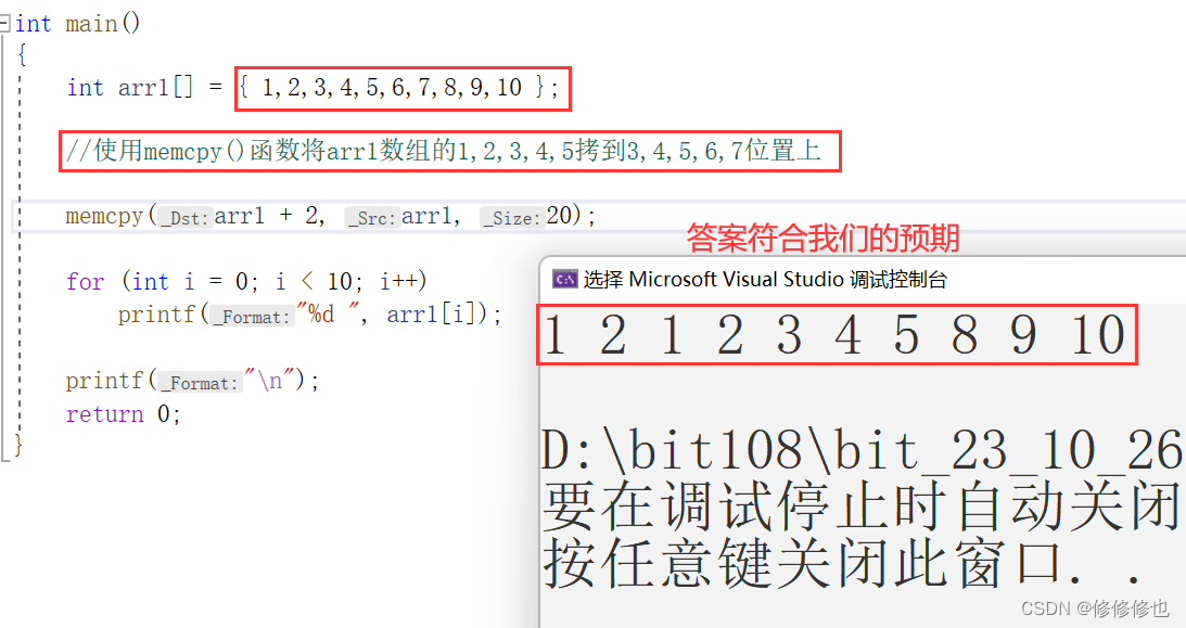 🎏使用memcpy()函数完成拷贝整型数组数据