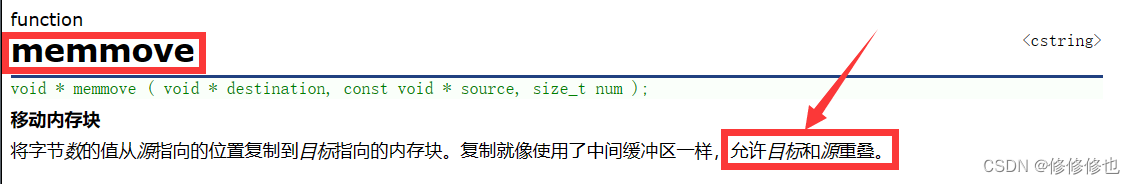 综上,在memcpy()函数部分,我将不再深入去探讨内存块重叠情况的内存拷贝的原理,图示以及模拟实现.而是将这部分的内容转移至对memmove()函数的详解博客中进行探讨.如果有感兴趣的朋友可以移步这篇博客,里面有非常详细的memmove()函数的简介,memmove()函数具体使用方式,memmove()函数实现拷贝重叠内存块逻辑图示以及memmove()库函数的模拟实现等相关内容,详情点击下方链接即可跳转阅读:
