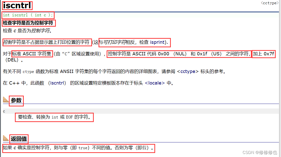 先来看cplusplus 网站官方对iscntrl()函数的解释:
