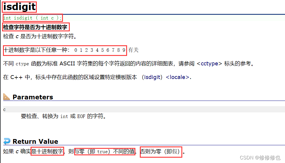 先来看cplusplus 网站官方对isdigit()函数的解释: