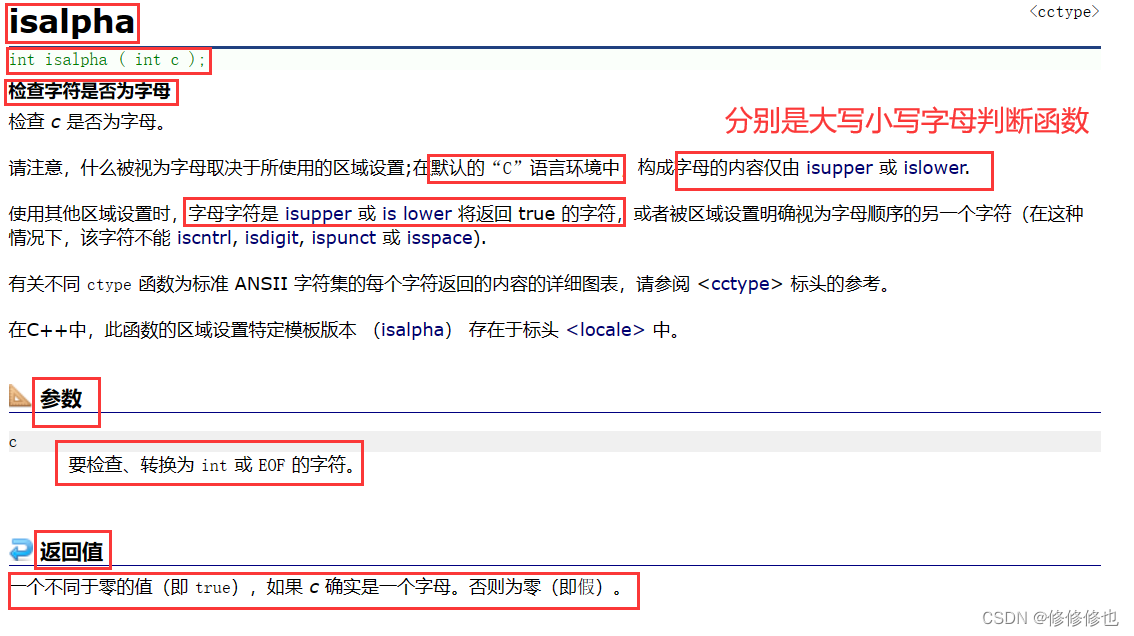 先来看cplusplus 网站官方对isalpha()函数的解释: