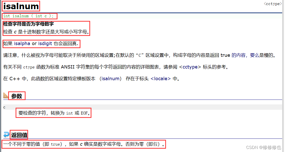 先来看cplusplus 网站官方对isalnum()函数的解释: