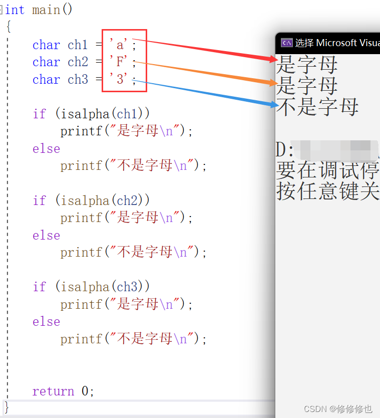 2. isalpha(),用于判断字符是否为字母。
