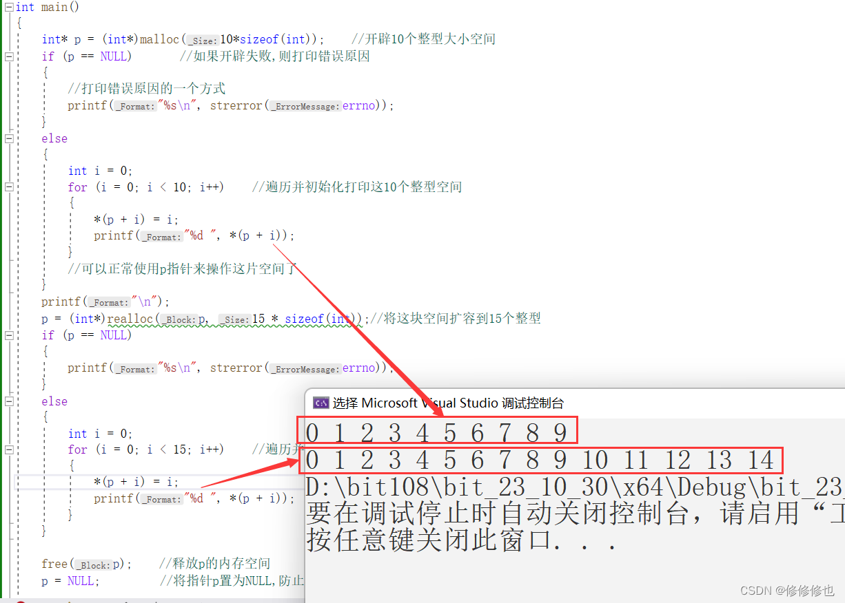 1.使用realloc()函数完成动态整型数组空间的扩容