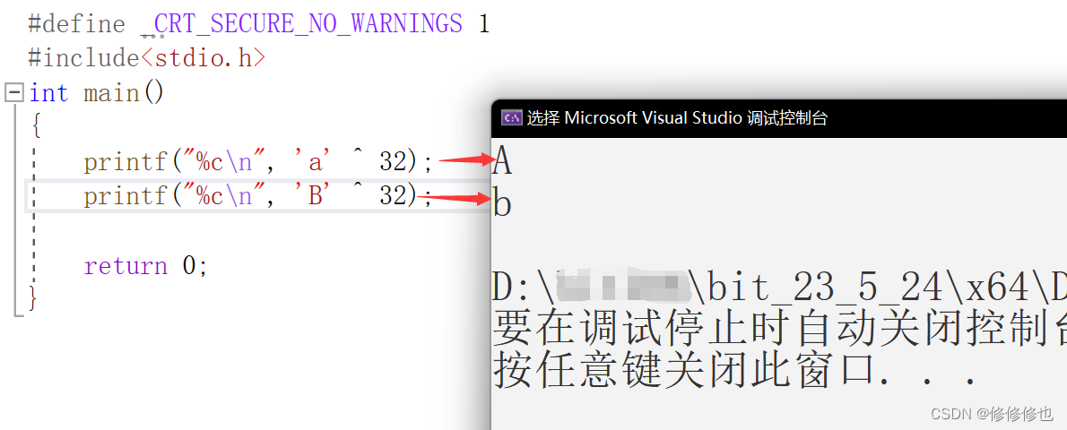 有关大小写字母的三种转换方式有感兴趣的朋友可以移步我的这篇博客:【C语言】字母转换大小写的三种方法