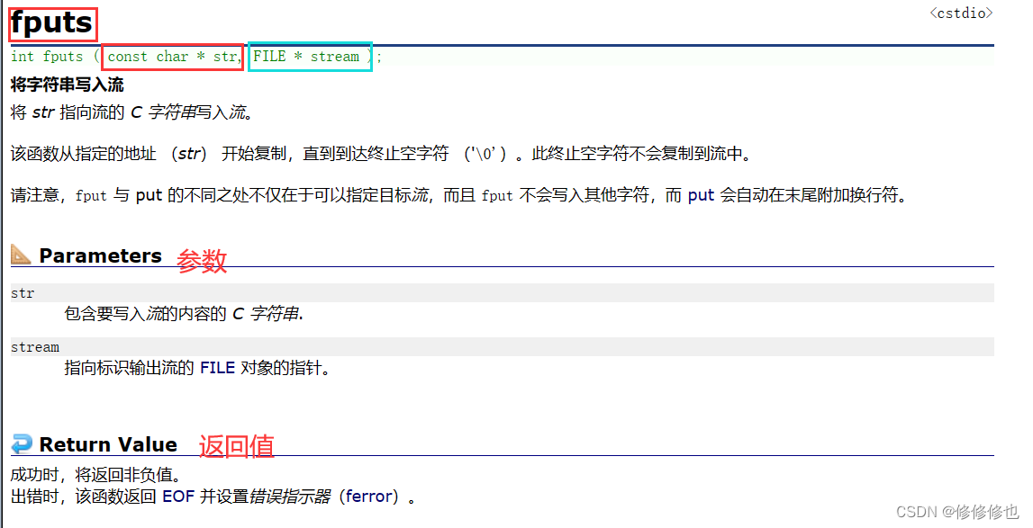 字符串的输出常用printf()函数,puts()函数,fputs()函数:
