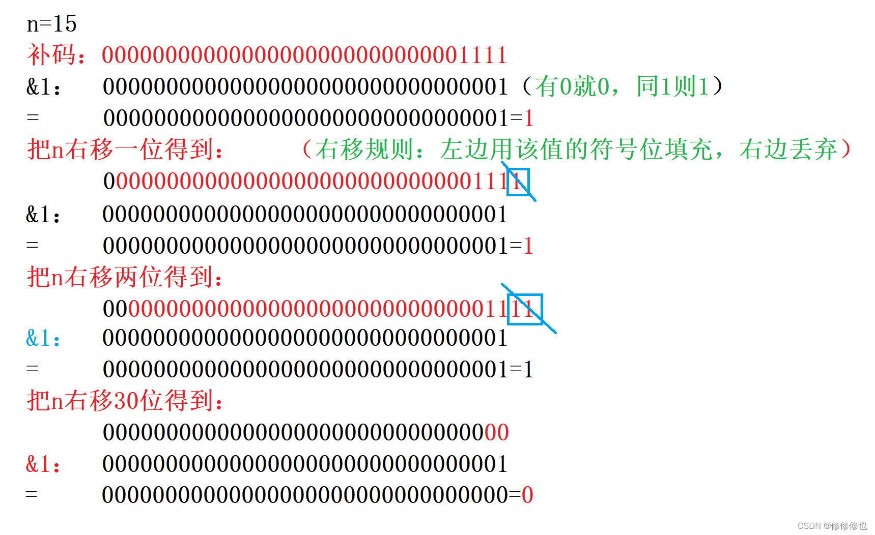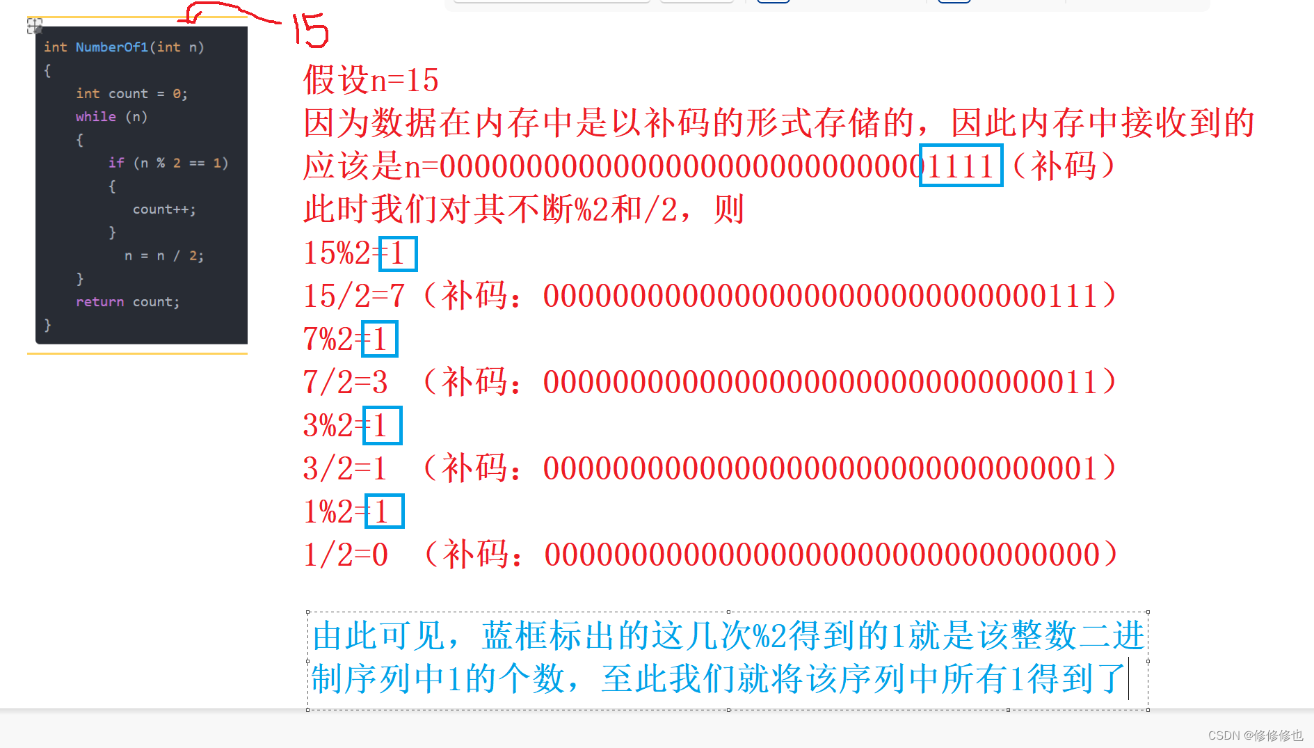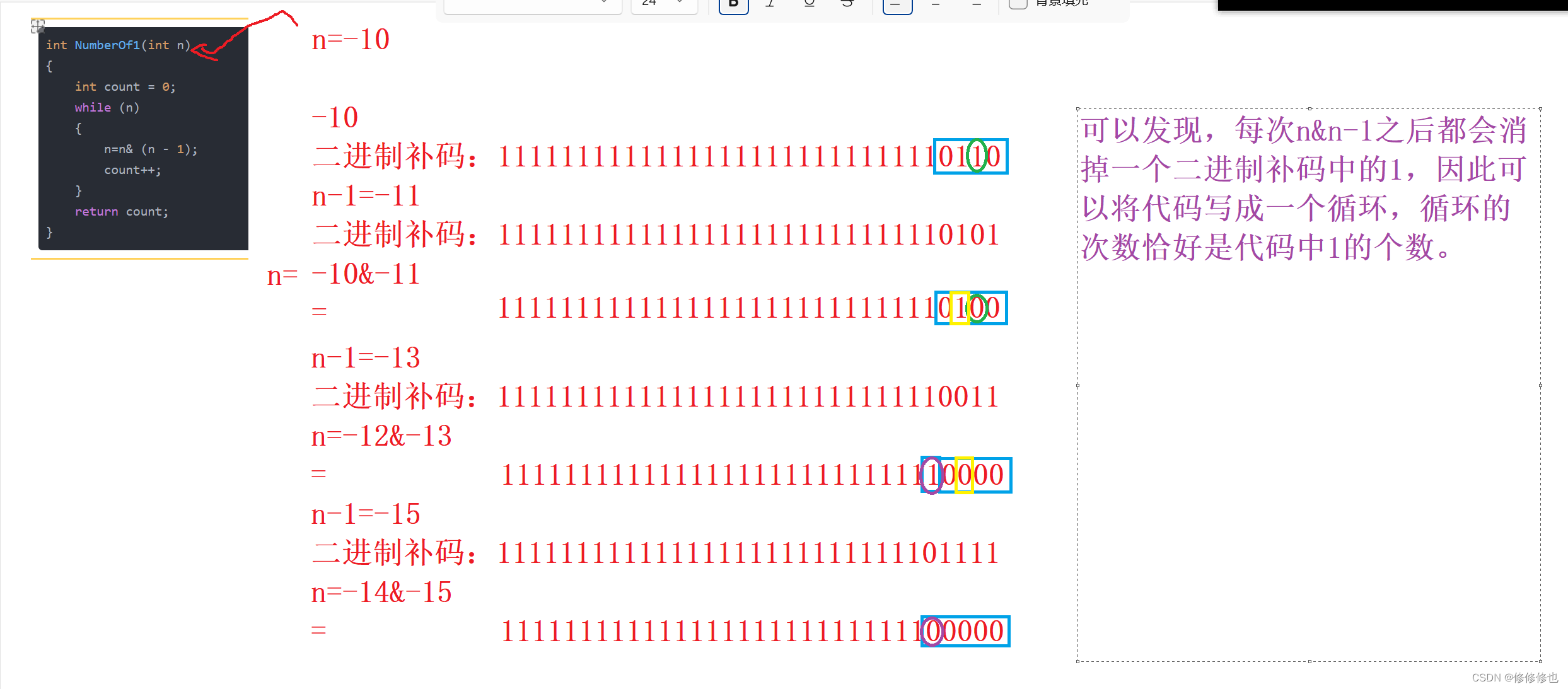 【摘要】 详解了关于"求一个整数的二进制序列中1的个数"的三种方法,其中包括逐位%2法,逐位&1法和n&(n-1)法,包含图解,简明生动.