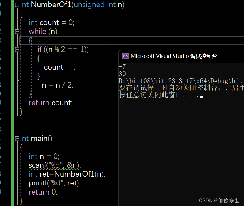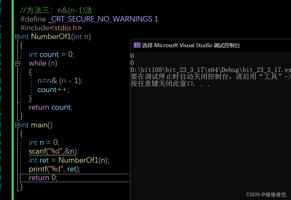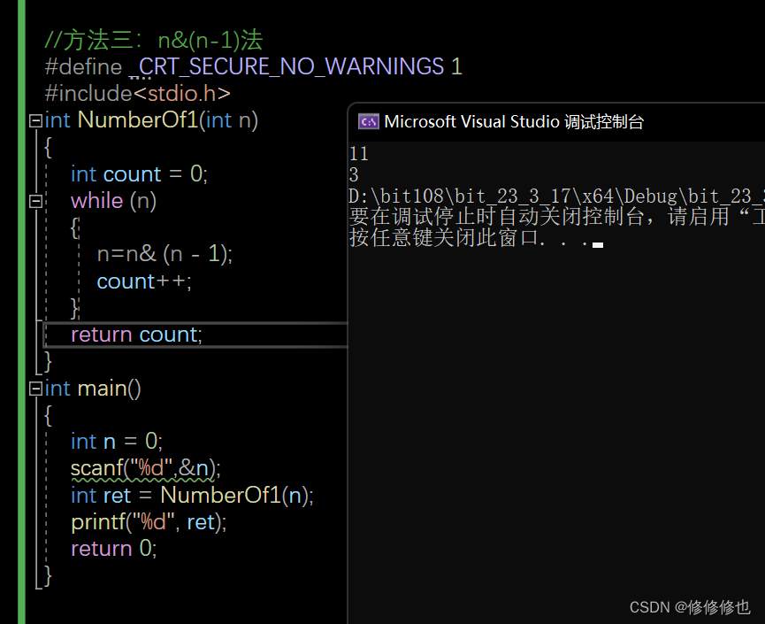 【C语言】求一个整数的二进制序列中1的个数的三种方法