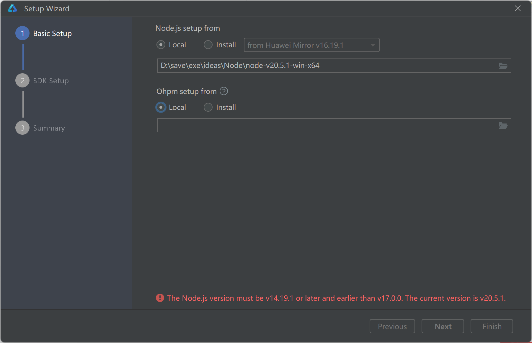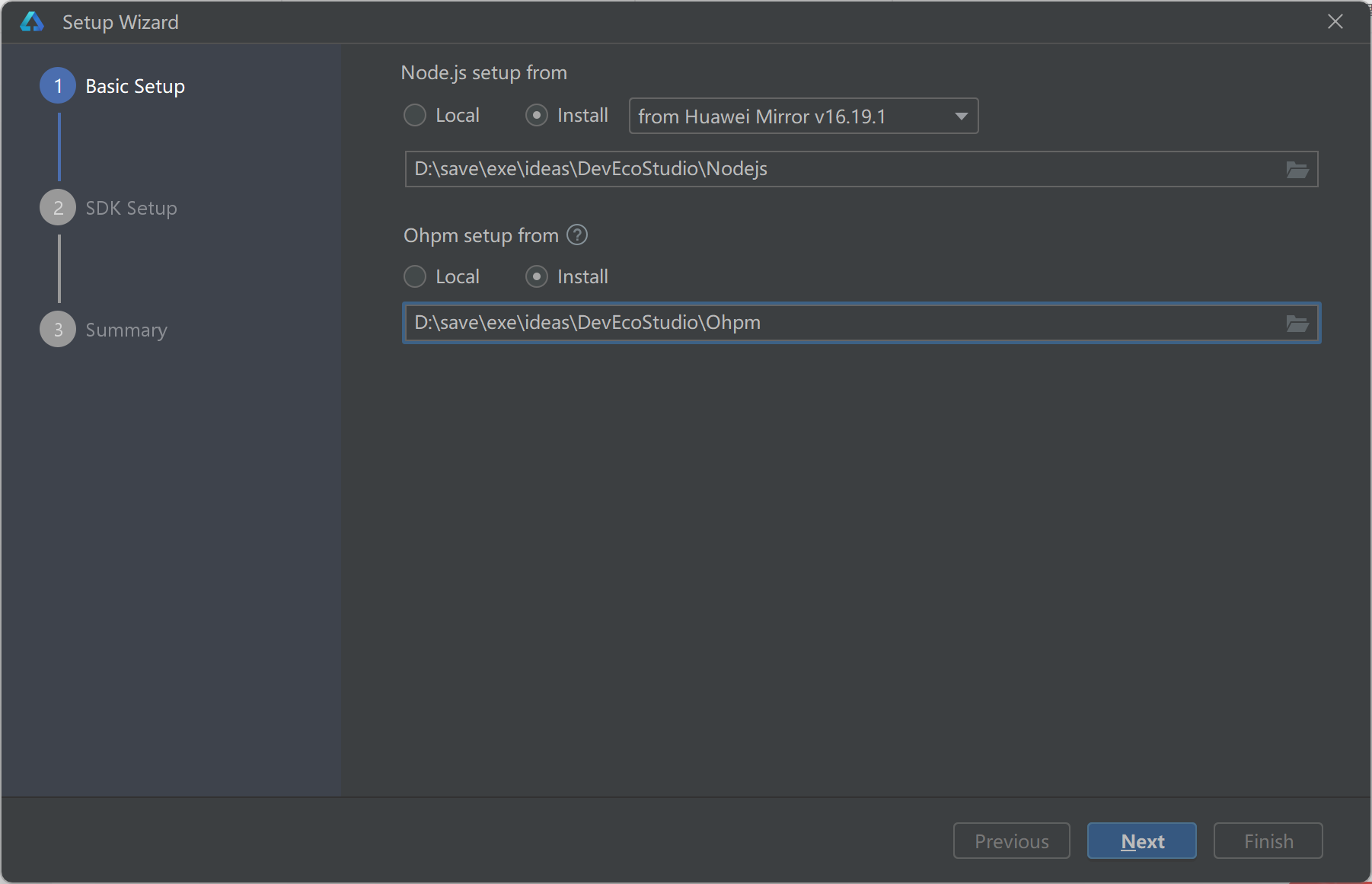 这里要求本地有Node.js的环境,以及Ohpm,但是我们一般情况下还真没有,如果没有的话我们就直接选择【Install】安装即可,但是要设置要安装位置。