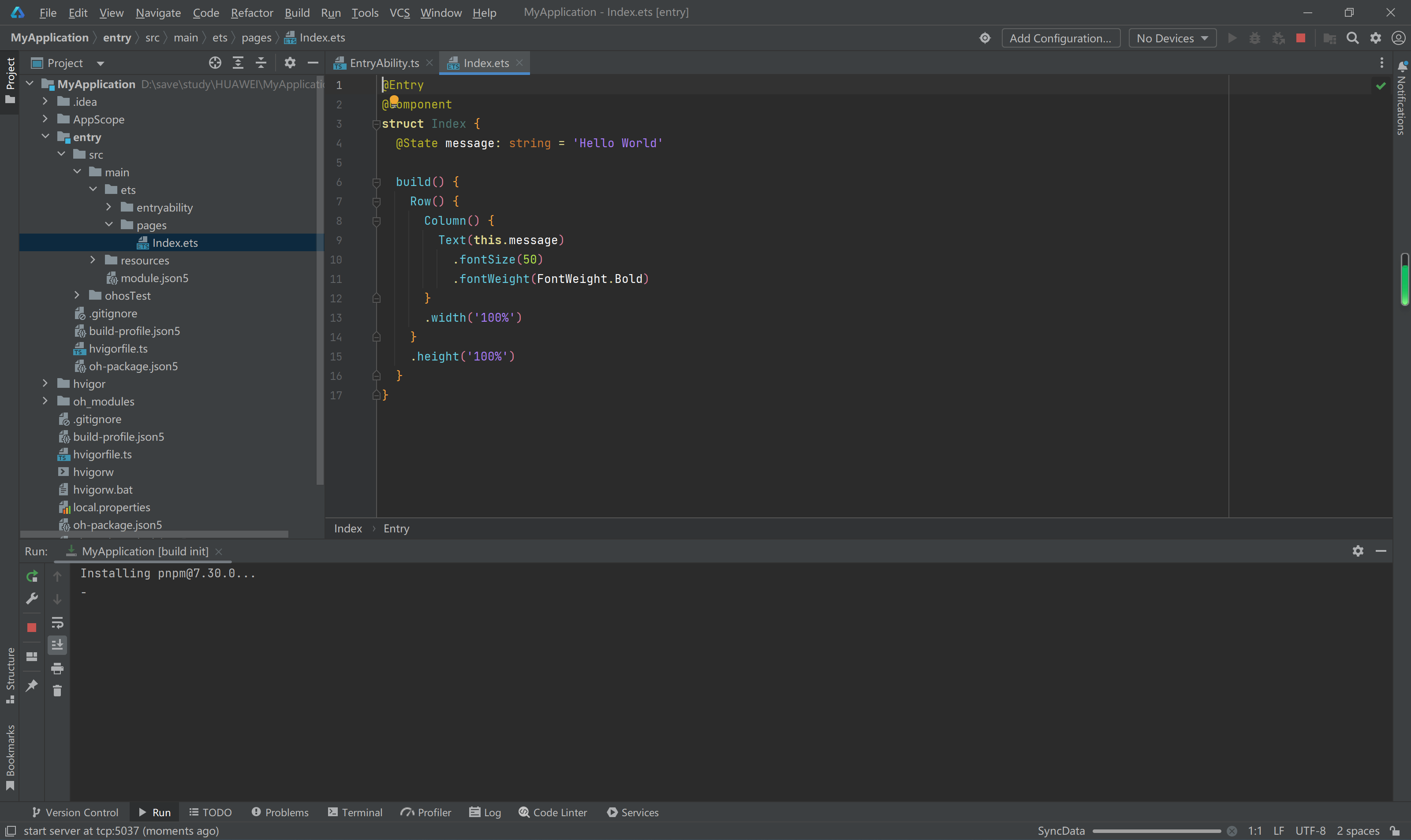 双击打开桌面的【DevEco Studio】快捷方式图标