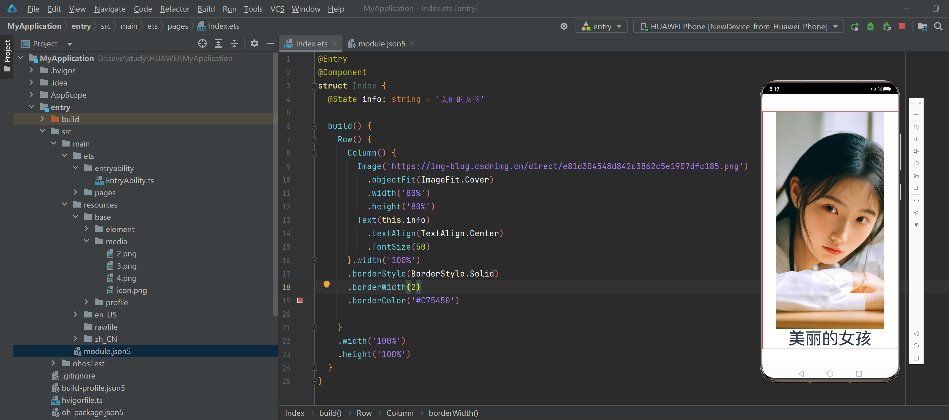 Image组件用来渲染展示图片,它可以让界面变得更加丰富多彩。只需要给Image组件设置图片地址、宽和高,图片就能加载出来。