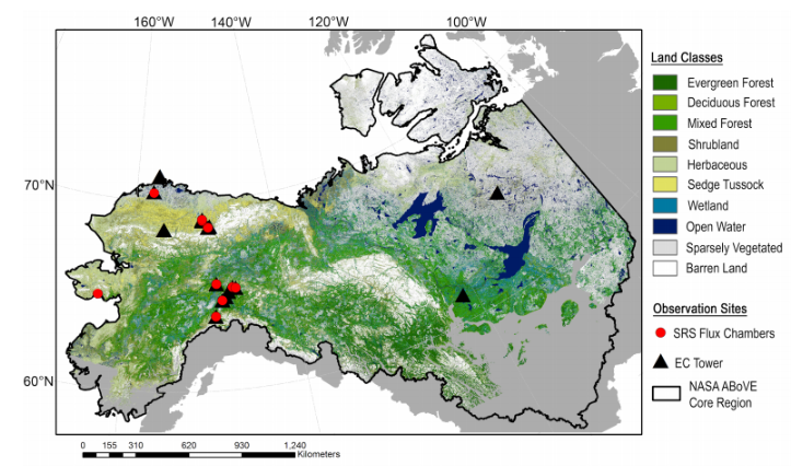 北极-北方脆弱性实验(ABoVE)是美国国家航空航天局(NASA)陆地生态计划的一项实地活动,重点是阿拉斯加和加拿大西部。ABoVE 的研究将基于实地的过程级研究与机载和卫星传感器获得的地理空间数据产品联系起来,为提高分析和建模能力奠定了基础,这些能力是了解和预测北极和北方地区生态系统对气候变化的反应以及气候变化对社会的影响所必需的。我们由 ABoVE 赞助的研究重点是土壤二氧化碳的时空模式和量级,而在迅速变暖的泛北极生态系统中,这些模式和量级还没有得到很好的量化。
