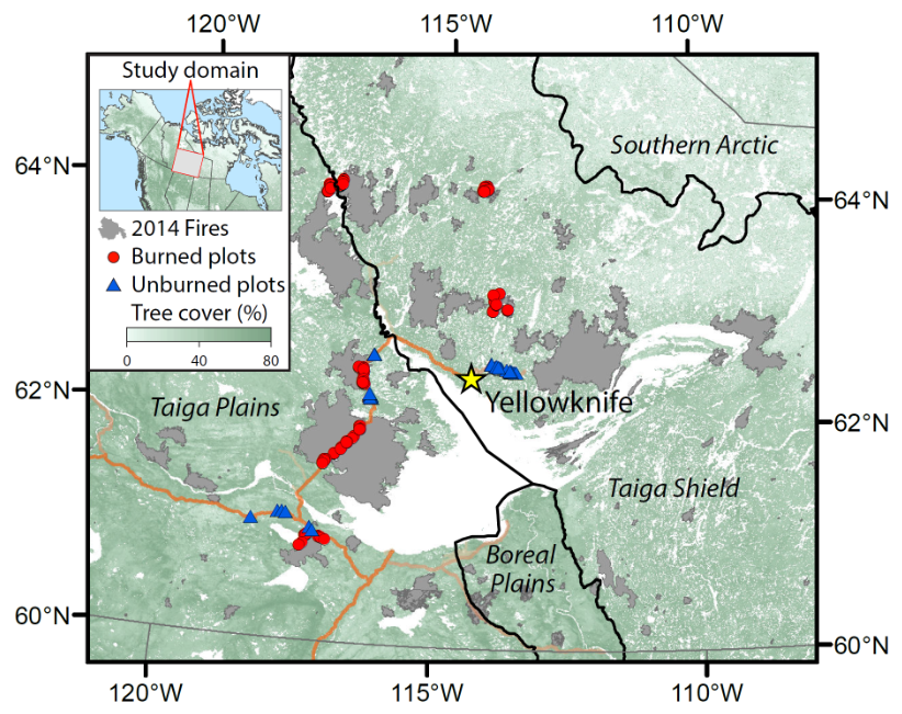 Walker, X.J., J.L. Baltzer, W. Laurier, S.G. Cumming, N.J. Day, S.J. Goetz, J.F. Johnstone, S. Potter, B.M. Rogers, E.A.G. Schuur, M.R. Turetsky, and M.C. Mack. 2019. ABoVE: Characterization of Carbon Dynamics in Burned Forest Plots, NWT, Canada, 2014. ORNL DAAC, Oak Ridge, Tennessee, USA.