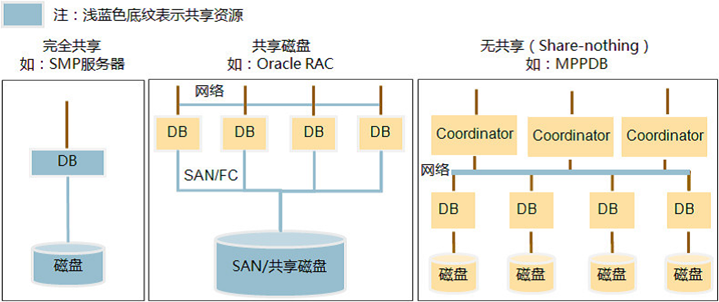 Share-nothing架构即无共享架构,整个系统由多个互不共享CPU、内存及磁盘的节点组成。此架构下,业务数据被分散存储到不同的数据节点上,业务查询任务由协调节点统一入口,推送给数据节点执行,待所有数据节点执行完成后再由协调节点汇总反馈给业务客户端。架构示意图如下: