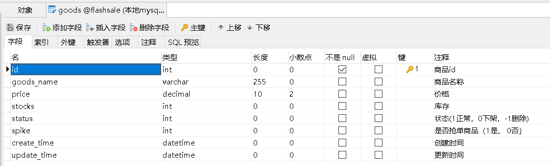 //4.减库存,添加订单信息--1、业务代码事务外加锁可实现线程安全 或2、数据库语句行锁update goods set stocks = stocks -1,update_time = now() where id = 1;
