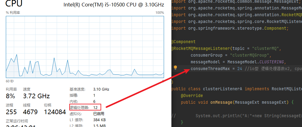 3、增加消费者数量,但是消费者线程数量要<=队列数。队列确定后不建议更改,根据实际场景修改