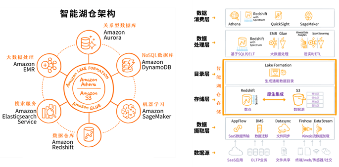 亚马逊Amazon Web Services官方给出了智能湖仓(湖仓一体)的参考架构:
