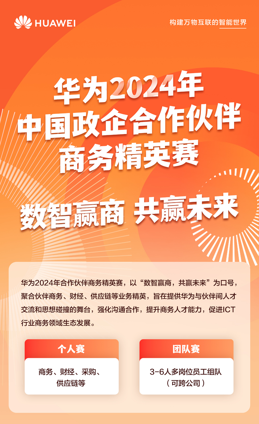 Hey,小伙伴们!近期有大事宣布:华为2024年中国政企合作伙伴商务精英赛来啦!🔥🎊🎉