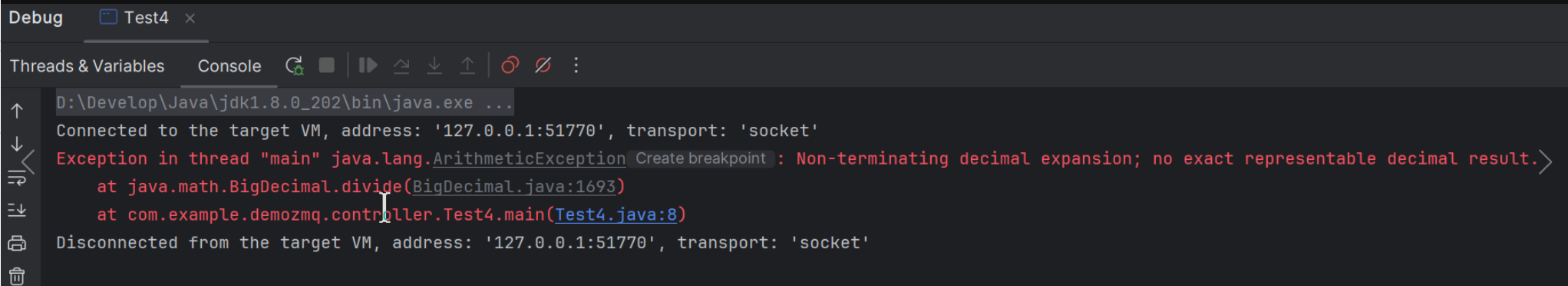原因是 Java 中使用 BigDecimal 做除法运算的时候,值有可能是无限循环的小数,所以我们就需要在 divide 方法中传递第二个参数,来定义小数点后的精确位数,否则在不整除的情况下,结果是无限循环的小数,就会抛出上面这个异常。