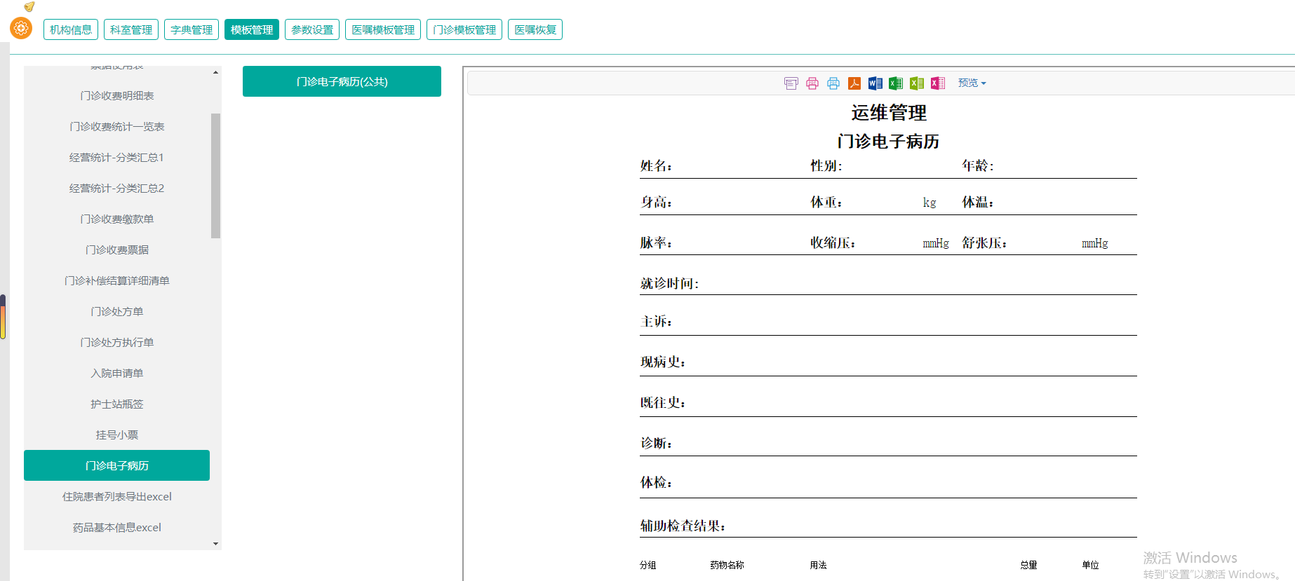 云HIS电子病历模板板块