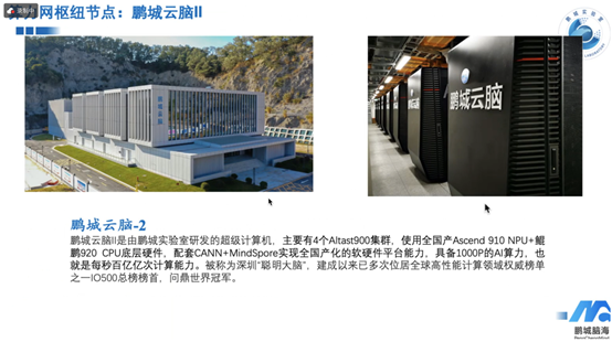 鹏城云脑-2.0主要由4个Altast900集群构成,采用了全国产的Ascend 910 NPU和鲖鹏920 CPU底层硬件。配套的CANN和MindSpore等软件栈,它实现了全国产化的软硬件平台能力。