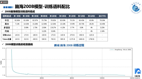 昇思MindSpore技术公开课大模型专题课程新年第一课聚焦鹏城·脑海模型的训练过程。鹏城·脑海200B模型是拥有2千亿参数的自回归式语言模型,在中国算力网枢纽节点‘鹏城云脑Ⅱ’上,基于昇思MindSpore的多维分布式并行技术进行长期大规模训练,已完成1.8T token量的训练。