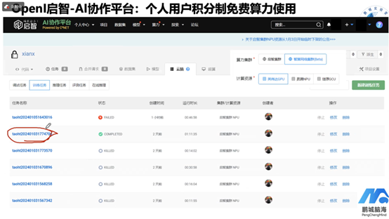 鹏城启智开源开放AI社区是为推动AI技术的发展而搭建的一个平台。在这里,提供了AI协同开发环境以及“中国算力网”的初始算力调度平台。这个平台,全国的用户都方便地获取到模型算法的开源代码以及算力资源。